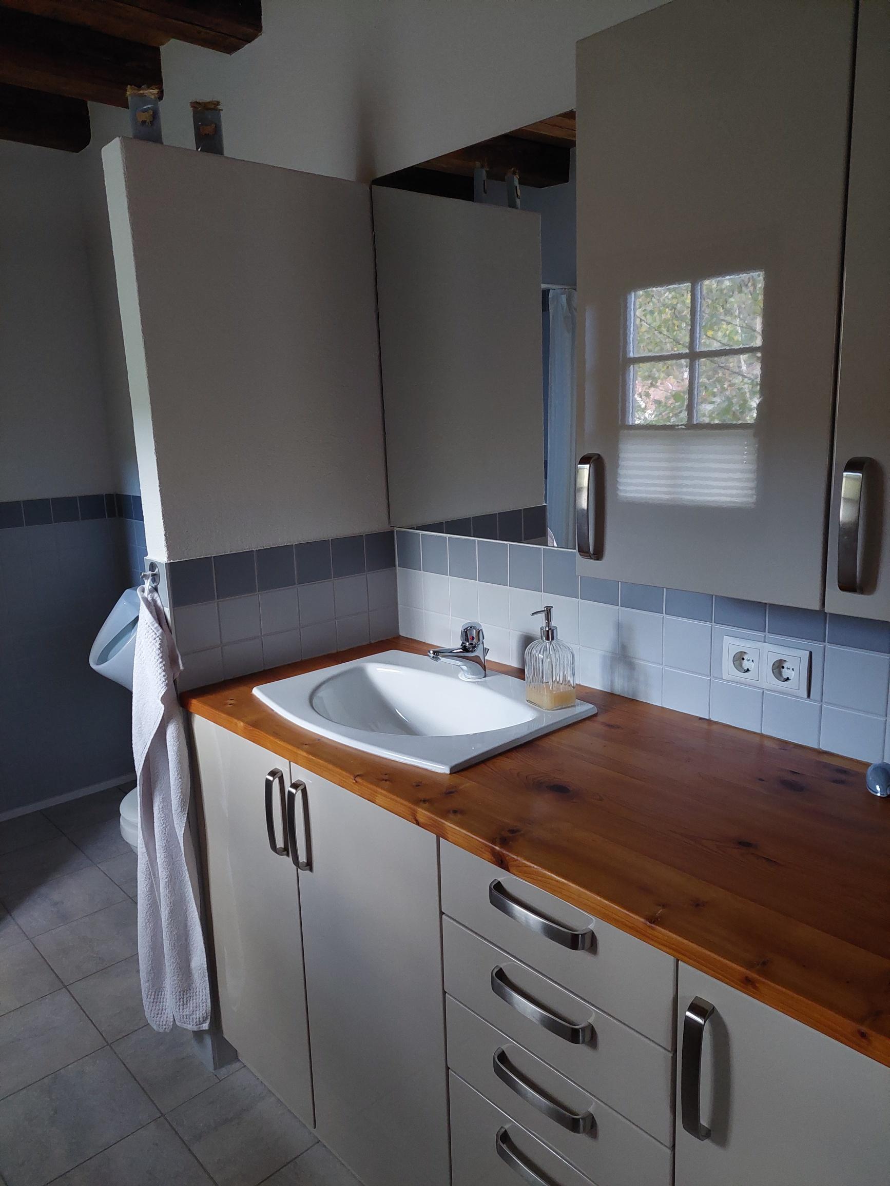 Wir wohnen durch unsere über 100 Jahre alte Linde räumlich getrennt in der zum Wohnhaus umgebauten Scheune.