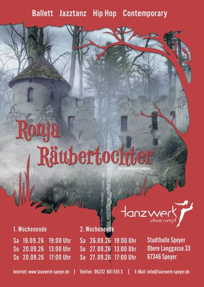 Im September diesen Jahres ist es wieder soweit: die Tanzgruppe um Silvia Rumpf präsentiert an sechs Terminen die große Tanzaufführung "Ronja Räubertochter" in der Stadthalle Speyer.