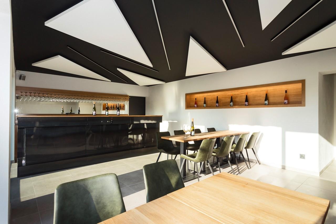 Bei der Vinothek wurde besonderen Wert auf natürliche und regionale Werkstoffe gelegt, um auch dem eigenen Anspruch und der Naturverbundenheit Ausdruck zu verleihen. Mit viel Liebe zum Detail entstand hier ein Kleinod für Freunde ausdrucksstarker Weine mitten in der Natur.