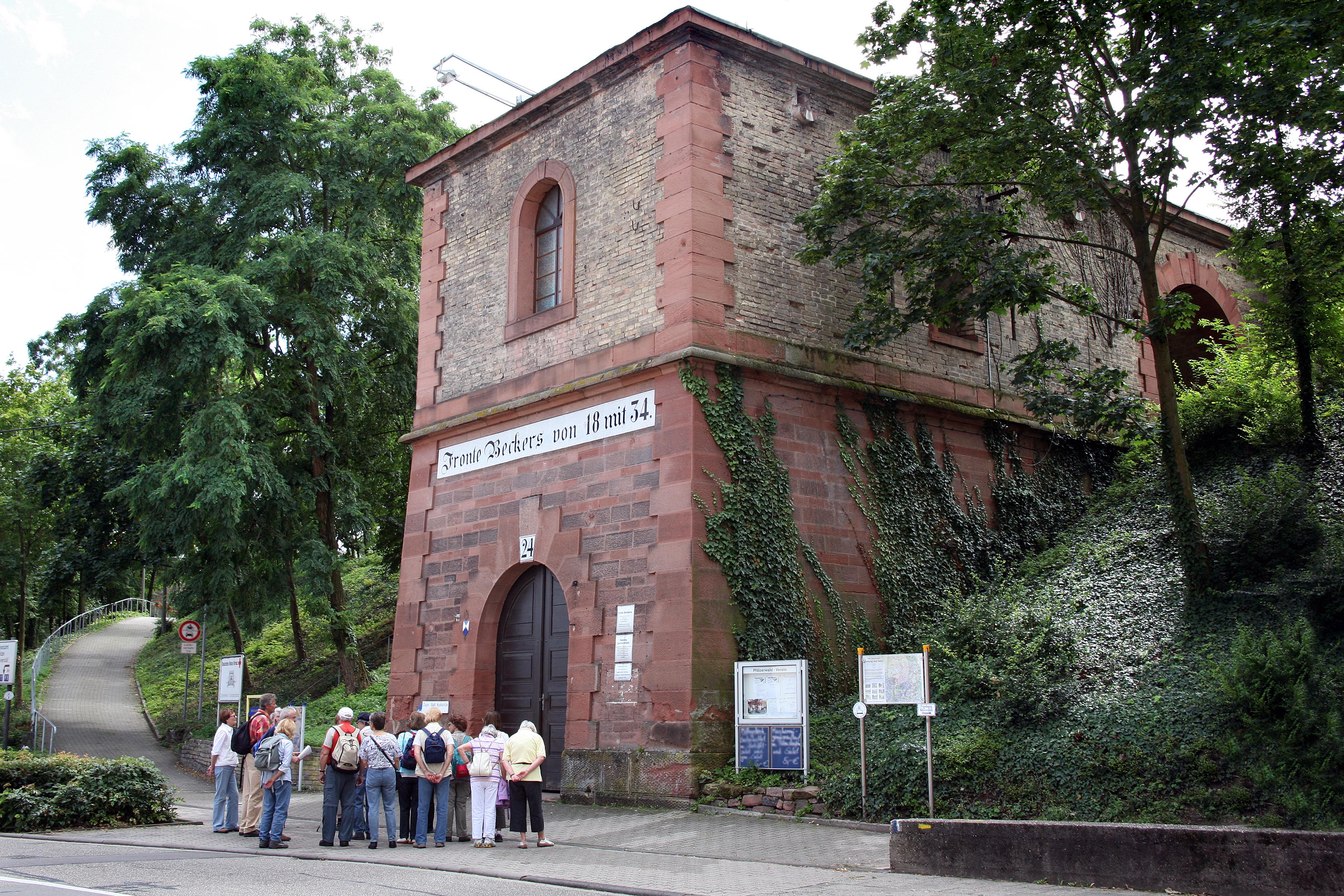 Der äußere Grabenrand besteht aus einer starken Sandsteinmauer. Von hier aus gehen im rechten Winkel gemauerte Minengänge ab. Die Fronte Beckers verfügte über 15 Hauptstollen und 90 Nebenstollen.