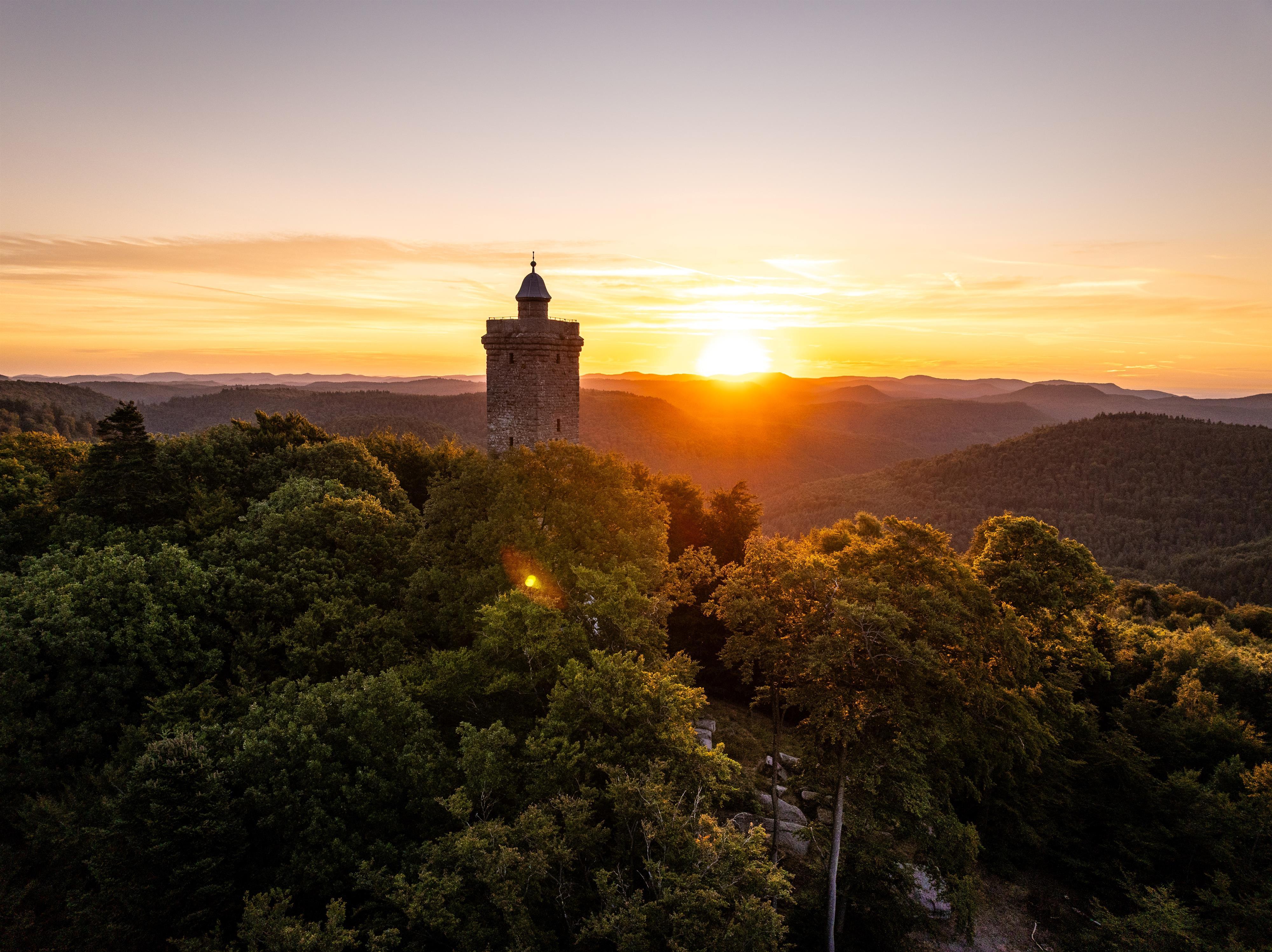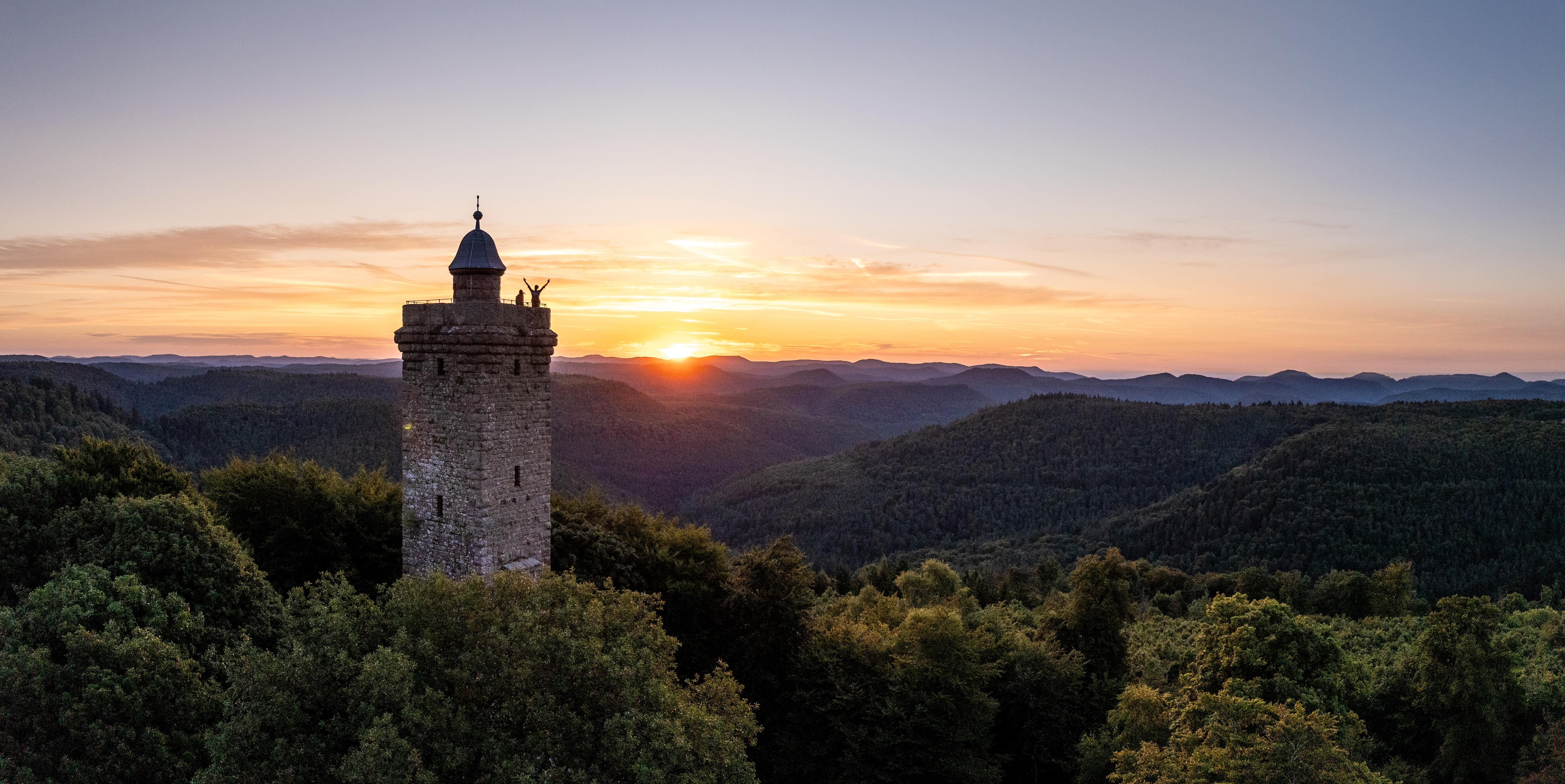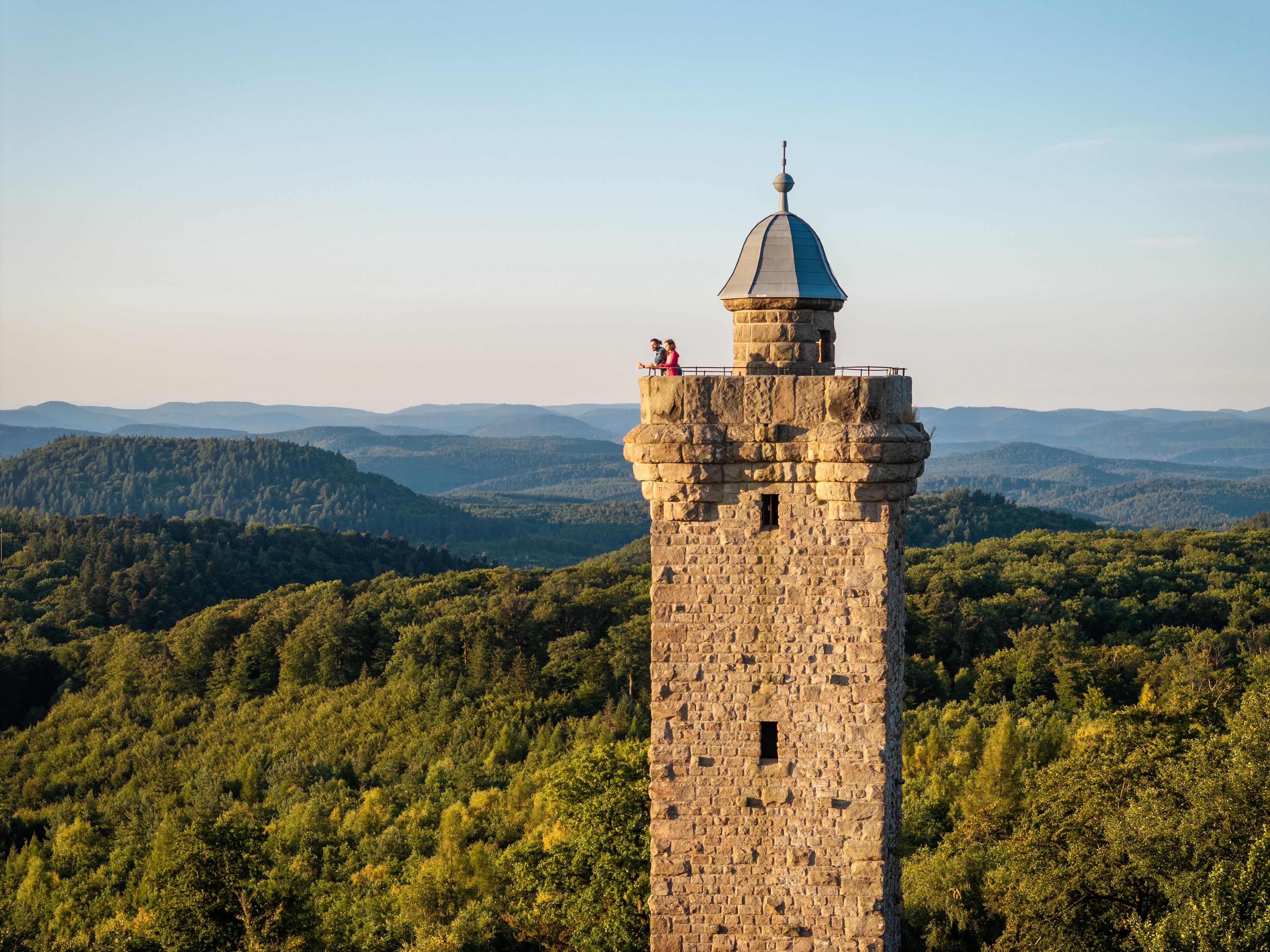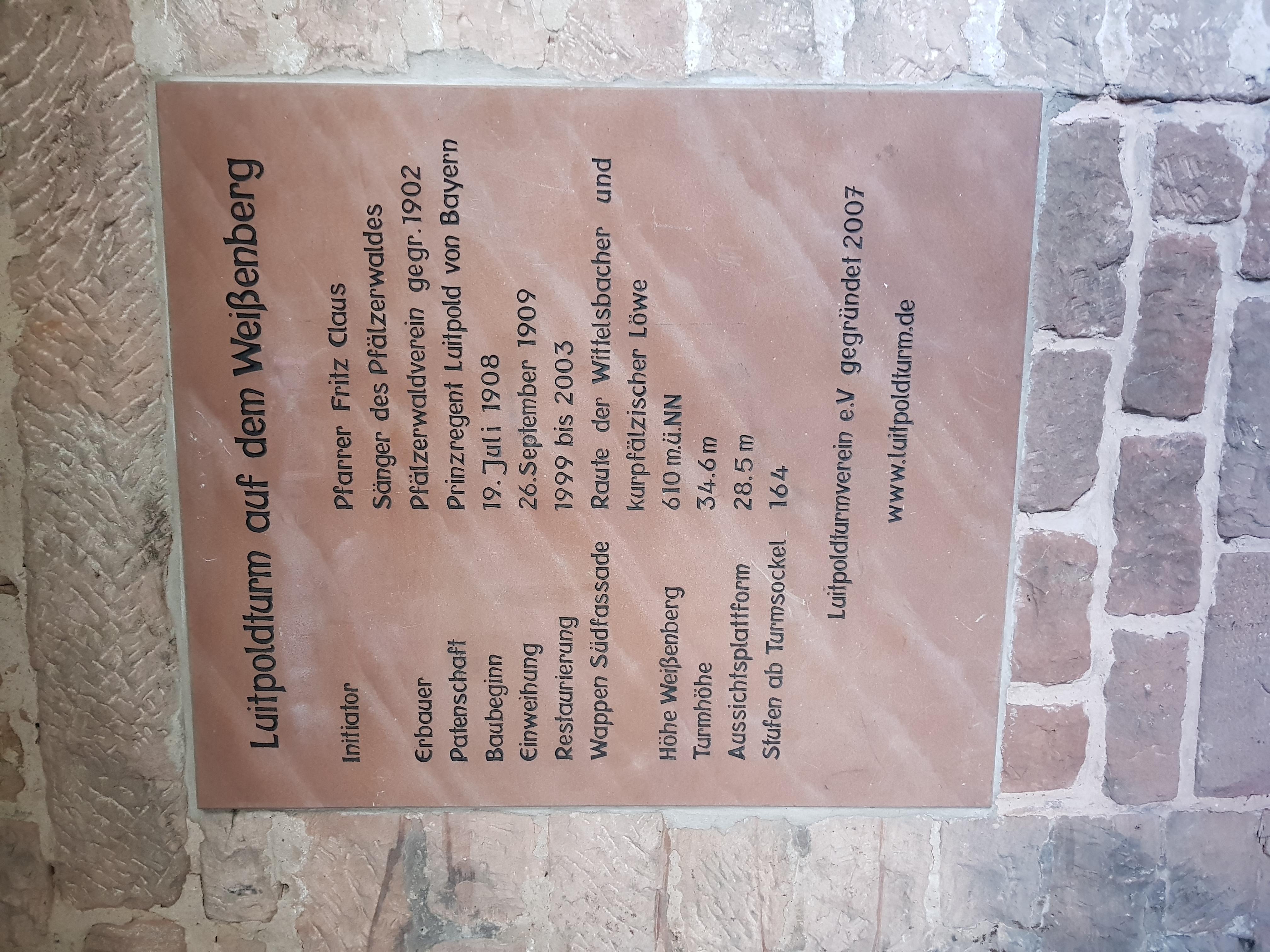 Kurz zur Geschichte des Turms: Im Jahre 1907 hatte der Pfälzerwald Dichter Fritz Claus die Idee, dem damaligen Prinzregenten Luitpold von Bayern (1821-1912) zu Ehren einen viereckigen Turm zu errichten. Der noch junge Pfälzerwald-Verein, zu dessen Gründern Fritz Claus gehörte, war stark an der Planung des Turms beteiligt und nach maßgeblicher finanzieller Unterstützung durch den Prinzregenten, der auch die Patenschaft übernahm, begann man noch im gleichen Jahr mit dem Bau aus heimischen Buntsandstein. Nach einer Bauzeit von 15 Monaten wurde der Turm am 26.09.1909 eingeweiht. Lange Zeit diente die Vorhalle des Turms als Schutzhütte für Wanderer und Waldarbeiter.