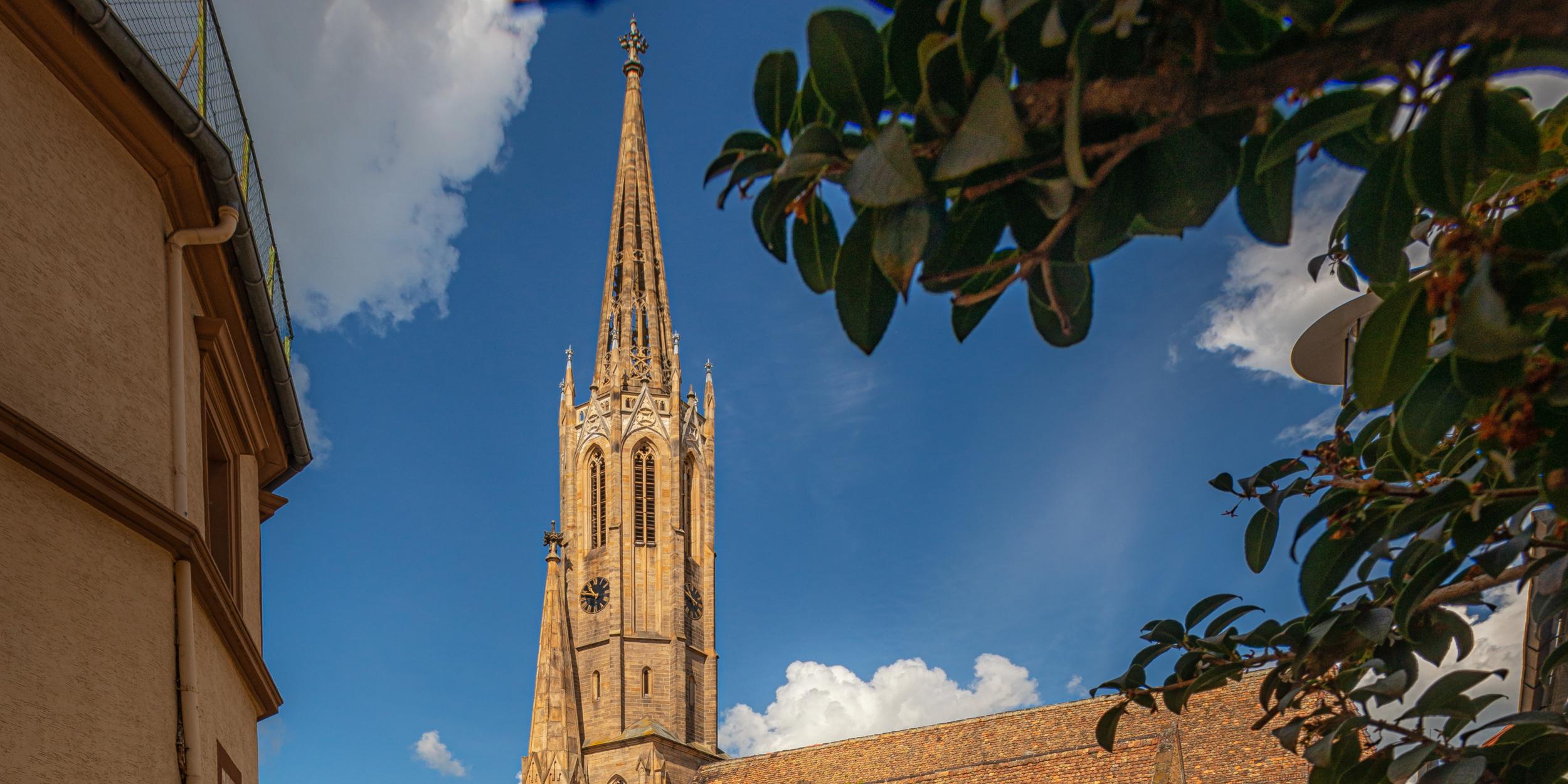 70m ragt der im Jahr 1866 im spätgotischen Stil erneuerte Turm in den Dürkheimer Himmel. Er setzt auf dem Turmstumpf der frühgotischen Kirche aus dem Jahr 1300 auf, welche die ältere romanische Basilika ersetzte, die erstmals im Jahr 946 erwähnt wurde. Die 1508 fertig gestellte Grabkapelle besteht aus der Ruhestätte der Leininger Grafen, dominiert vom Doppelepitaph des Grafen Emich XII. mit seiner Gemahlin Maria Elisabeth, und der Herrscherloge. Mehr erfährt man bei einer Stadtführung.