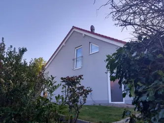 Freistehendes 4****Sterne-Ferienhaus mit Garten (ca. 400qm mit großer Rasenfläche) für 4 Personen (zusätzliche Schlafmöglichkeit für 2 weitere Personen auf Anfrage möglich). Im Erdgeschoss: offener Wohn-/Essbereich mit Küche sowie Bad mit Du/WC. Im Obergeschoss: zwei Doppelschlafzimmer. Wallbox für E-Autos vorhanden (11KW, Abrechnung nach Verbrauch).