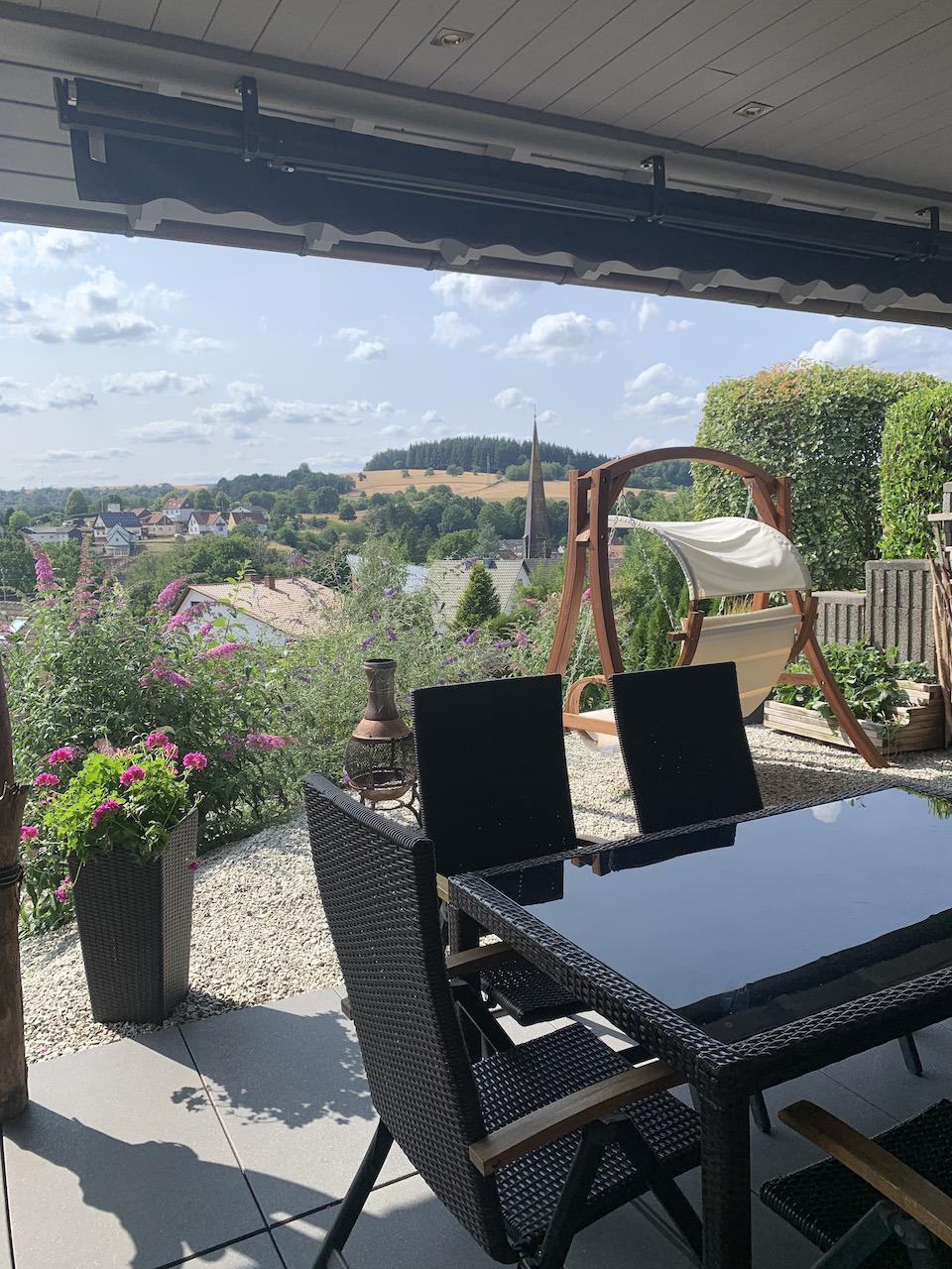 Die große überdachte Terrasse mit herrlichem Ausblick, Grillmöglichkeit und Pizzaofen lädt zum entspannen und genießen ein.