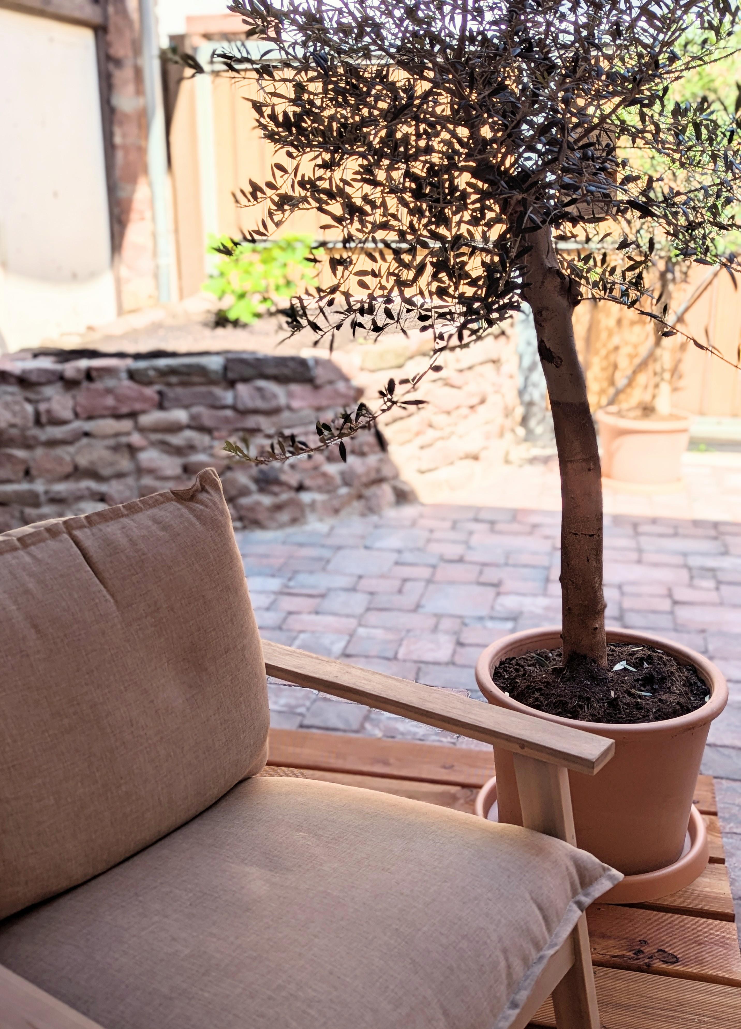 Zwischen Feigen- und Olivenbäumen können Sie es sich auf der gemütlichen Lounge bequem machen und ein gutes Glas Wein genießen. Ob tagsüber im Schatten der alten Scheune, oder an lauen Sommerabenden. Hier wollen Sie gar nicht mehr weg!