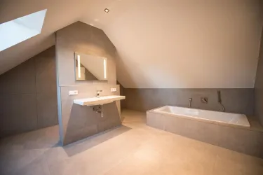 Der Dachboden des Maschinenhauses wurde zu einer lichtdurchfluteten, ruhigen, großzügigen und komfortablen Ferienwohnung gestaltet. Im Erdgeschoss befindet sich die Galerie der Künstlerin.