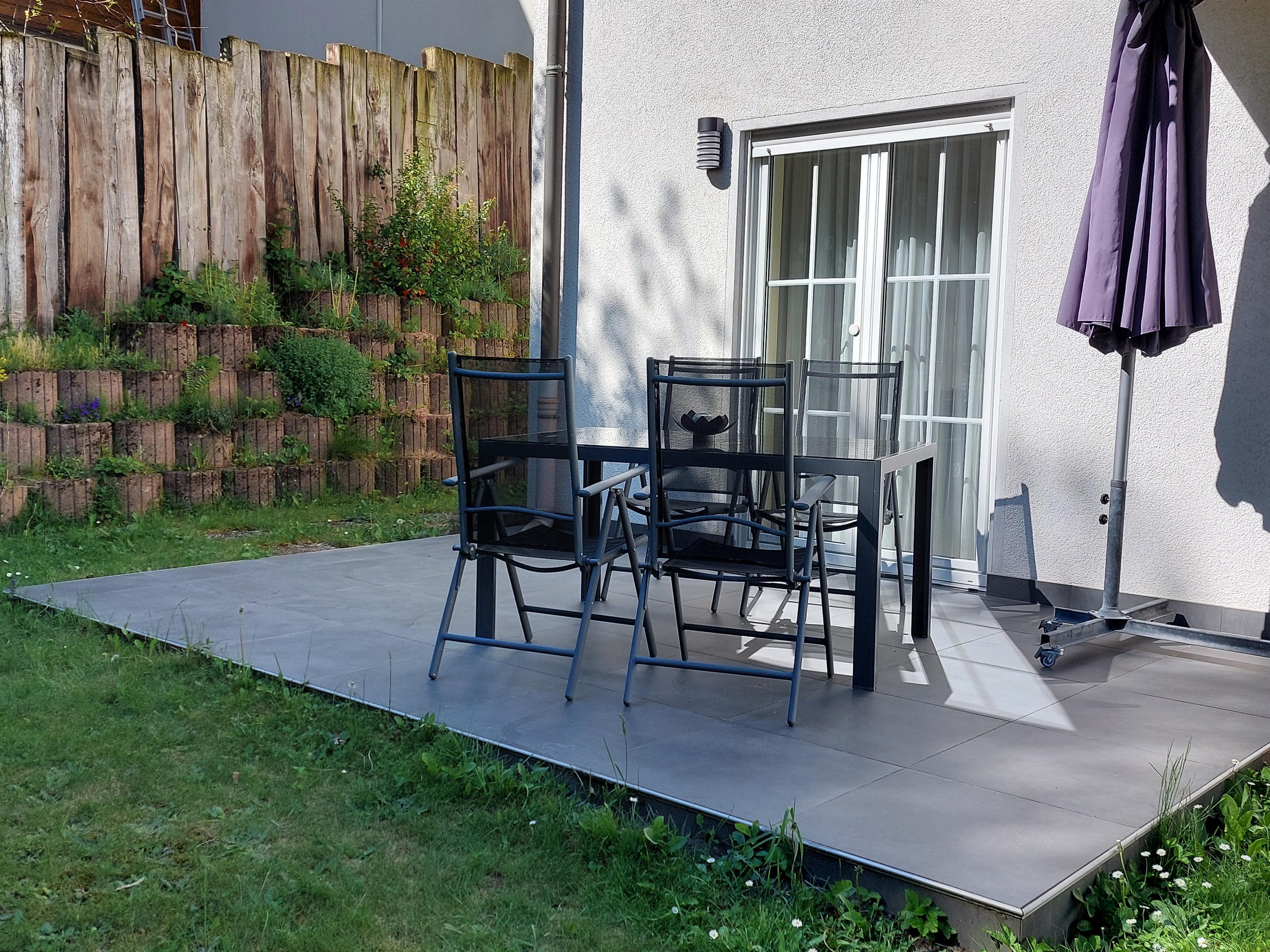 Die Ferienwohnung für zwei Personen, mit eigener Terrasse zur Südseite, hat eine Wohnfläche von 60m² und ist aufgeteilt in ein gemütliches Schlafzimmer, sep. Wohnzimmer, Küche und Abstellraum.
