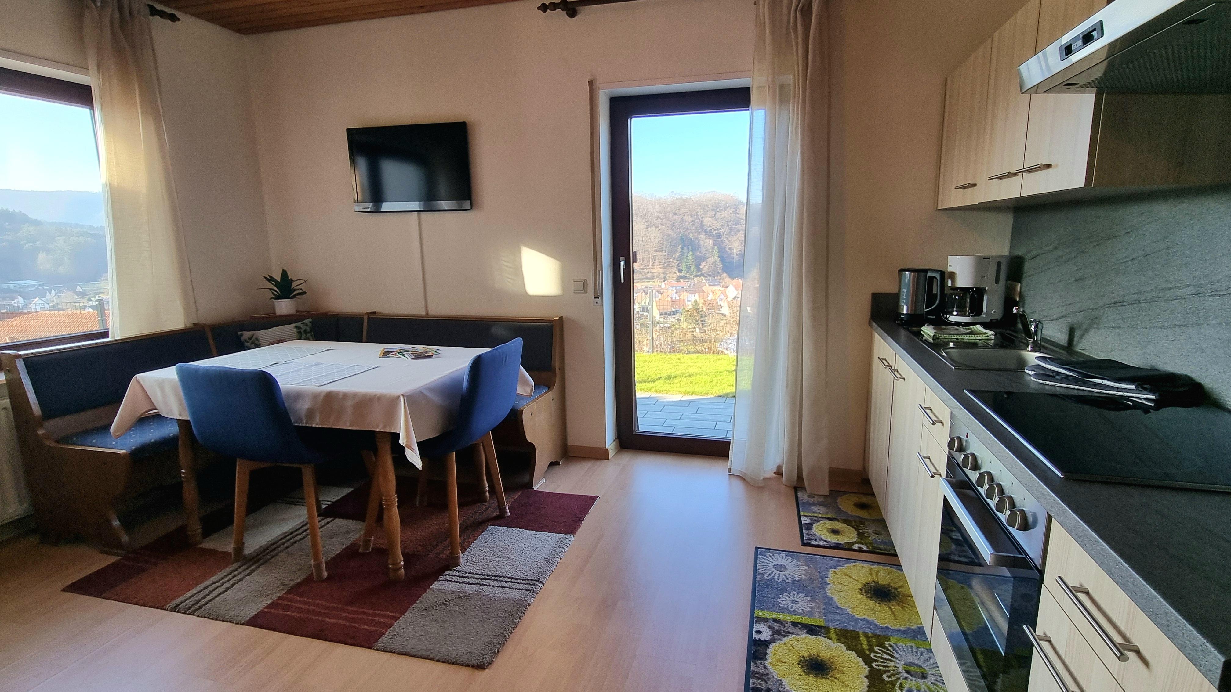 Unser Gästehaus liegt oberhalb von Bruchweiler-Bärenbach im Herzen des Pfälzerwaldes. Sowohl der Garten mit Terrasse als auch Ihre Balkone sind nach Südwesten ausgerichtet, sodass die Wohnungen den ganzen Tag von der Sonne verwöhnt werden und Sie abends den Sonnenuntergang genießen können. Aufgrund der unverbauten Hanglage bietet sich ein spektakulärer Blick über den Ort und in den Pfälzerwald. Direkt oberhalb des Hauses finden Sie den Einstieg in das Wandergebiet u.a. mit dem Premium-Wanderweg "Bärensteig". Weitere Wanderwege, Radstrecken sowie die Felsen und Burgen des Dahner Felsenlandes finden Sie direkt vor unserer Haustür. Aufgrund der zentralen Lage liegen die Städte Dahn und Bad Bergzabern in unmittelbarer Nähe. Die deutsche Weinstraße mit ihrer Vielzahl an Weinlokalen und -festen sowie das französische Elsass sind für einen Ausflug bestens zu erreichen.