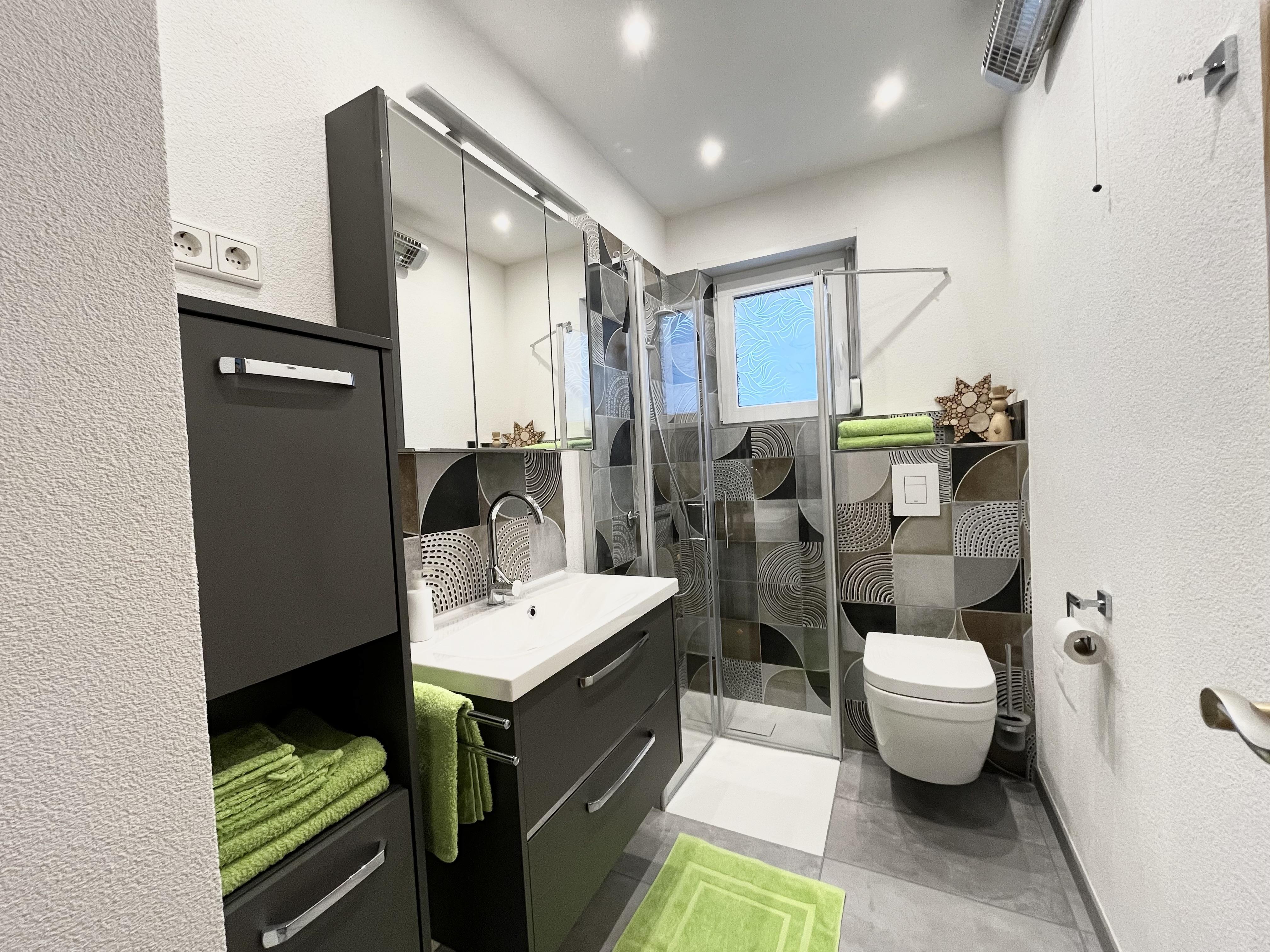 Im EG befindet sich unser "Spa" mit Sauna, Infrarotkabine, Chill-Ecke, sowie unser Gym mit Peloton-Rad, Kettler-Elypsentrainer und Vibrationsplatte. Springseil und Gewichte sind ebenfalls vorhanden. Dort befindet sich auch eine Dusche mit WC.
