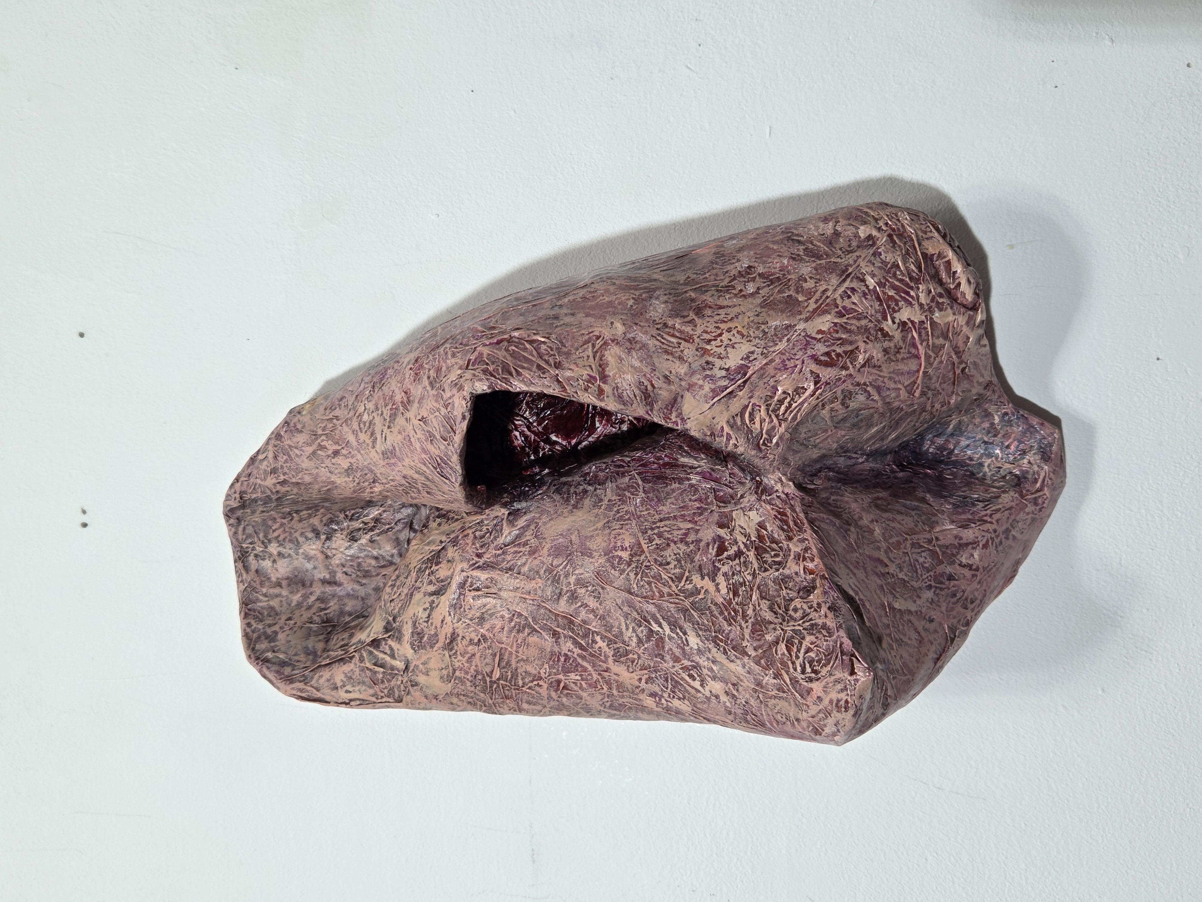 Karin Engelbrecht bannt menschliche Zustände wie Freude, Angst oder Stolz auf die Leinwand – vermittelt durch die Gestaltung der Oberflächenstruktur. Auf manchen Bildern sind menschlich reduzierte Formen zu erkennen, insgesamt aber konzentriert sich die Künstlerin auf die Haut als größtes menschliches Organ. Die Leinwand wird mit Haut überzogen, wird selber zur Haut, auf der sich die innere Verfassung, die Stimmung und die Gefühlslage des Menschen widerspiegelt. Dabei erweitert die Künstlerin ihr bildnerisches Spektrum, indem sie aus der Zweidimensionalität der Bilder sukzessive dreidimensionale plastische Objekte entwickelt. Die Haut als Spiegel der Seele wird zur schützenden Hülle, zum Gefäß, das all das bewahrt, was den Menschen ausmacht.