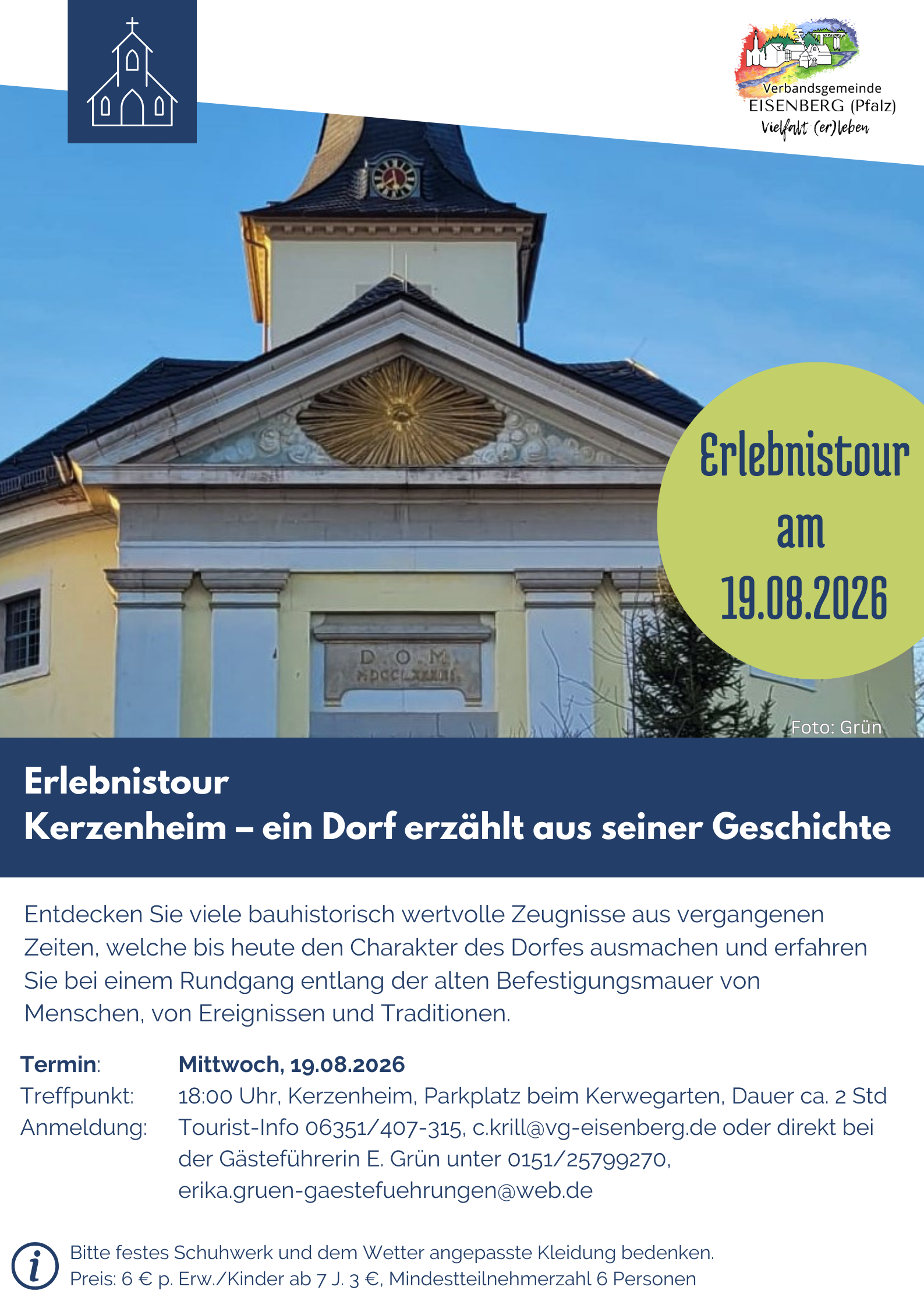 Anmeldung: Tourist-Info 06351/407-315, c.krill@vg-eisenberg.de oder direkt bei der Gästeführerin E. Grün unter 0151/25799270,
