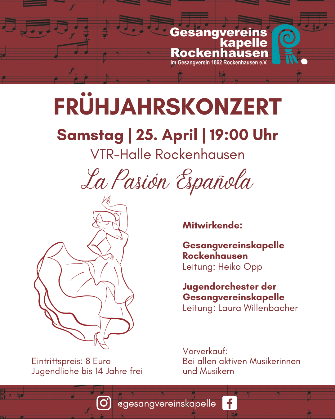 Spanische Leidenschaft, mitreißende Rhythmen und südländisches Temperament stehen im Mittelpunkt des diesjährigen Frühjahrskonzerts der Gesangvereinskapelle Rockenhausen. Unter dem Motto „La Pasión Española“ lädt das Orchester am Samstag, 25. April, um 19:00 Uhr in