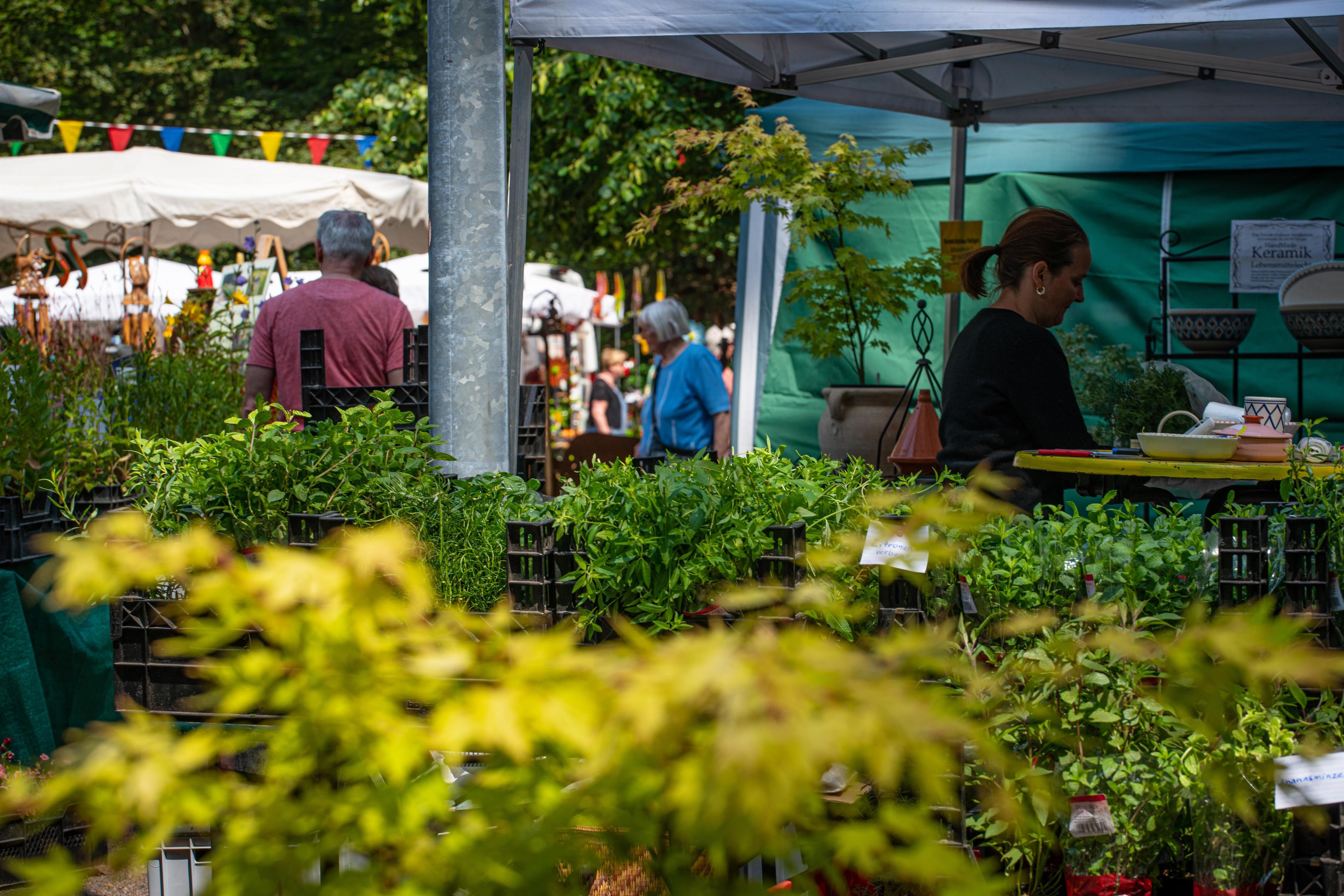 Der Kräutermarkt bietet einen richtigen Kräuterreigen. Die Aussteller haben ein reichhaltiges Angebot rund um und mit den Kräutern zum Verkaufen und Verkosten.