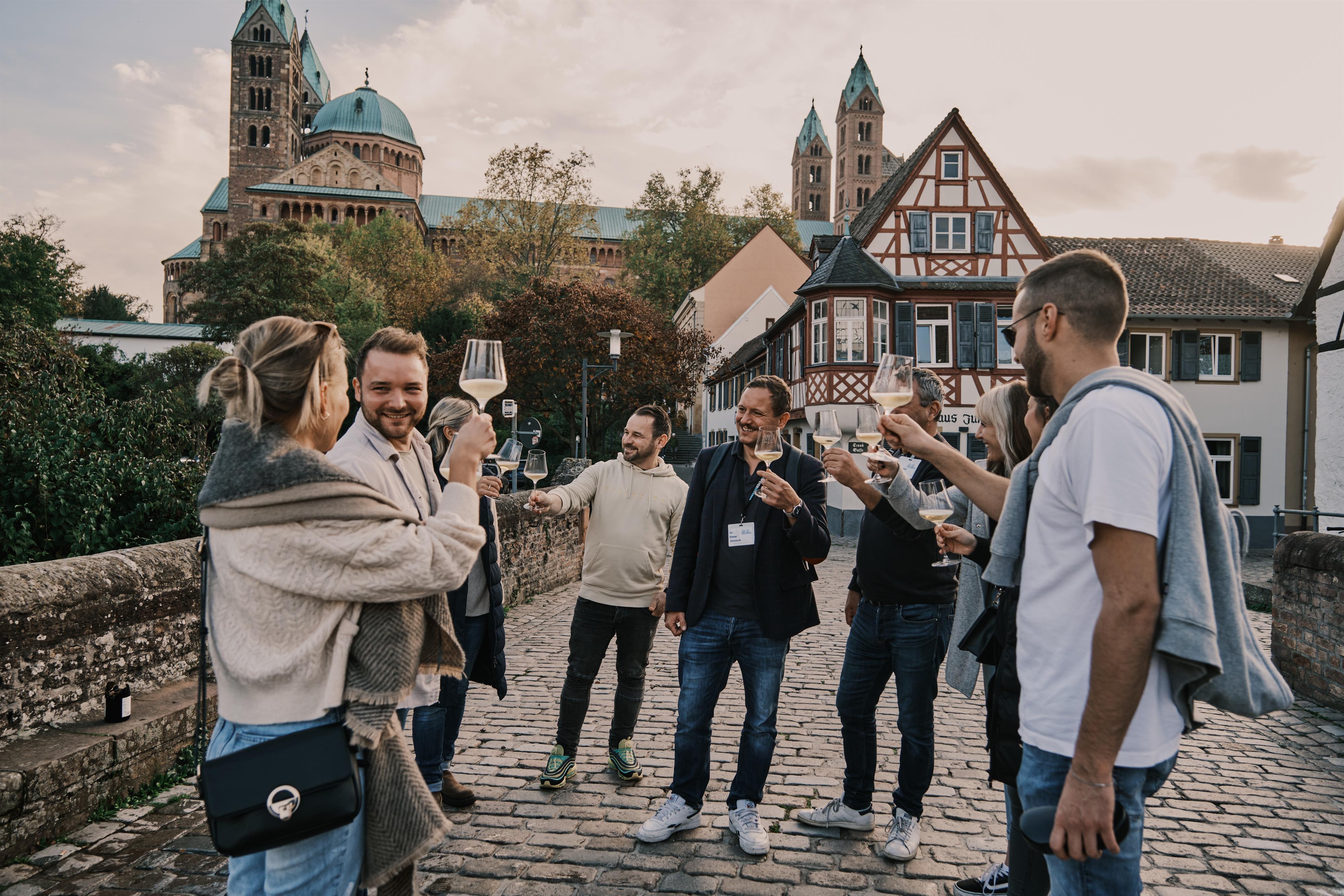Was könnte es Besseres geben als eine Stadtführung durch die wunderschöne und historische Stadt Speyer? Richtig! Eine Stadtführung, welche Sie mit außergewöhnlichen Weinen genießen können. Einer unserer Stadtführer nimmt Sie mit zu den spannendsten Orten der Speyrer Innenstadt, während Sie von einem echten Winzer mit regionalen Weinen verwöhnt werden. Genießen Sie echte Pfälzer Lebensfreude in Form von fruchtigen Aromen im Glas, während Sie mit uns die Geheimnisse der Speyerer Altstadt lüften.