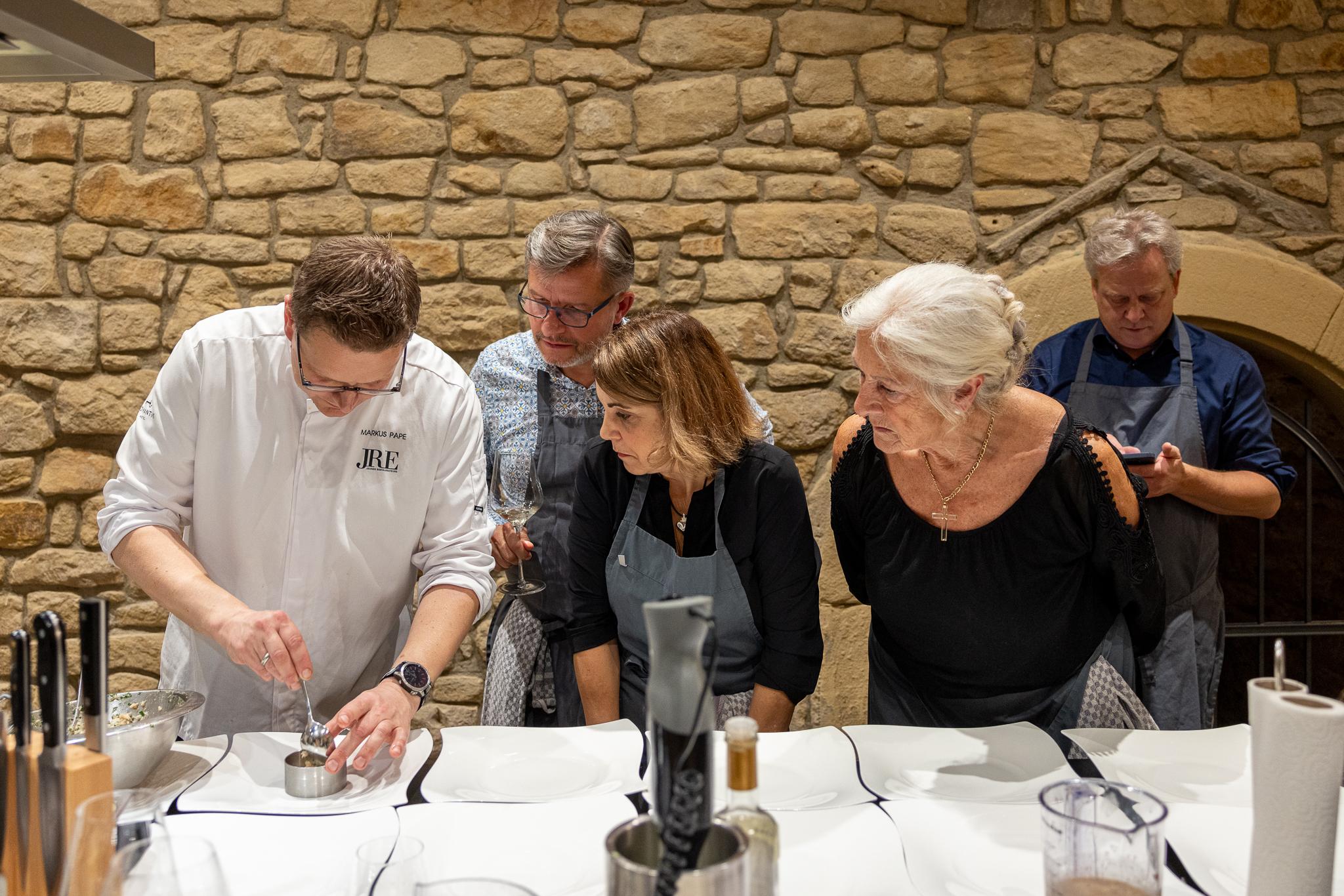 199,- € pro Person inkl. 4-Gang Menü, Rezeptmappe, begleitender Getränke und kleiner Überraschung