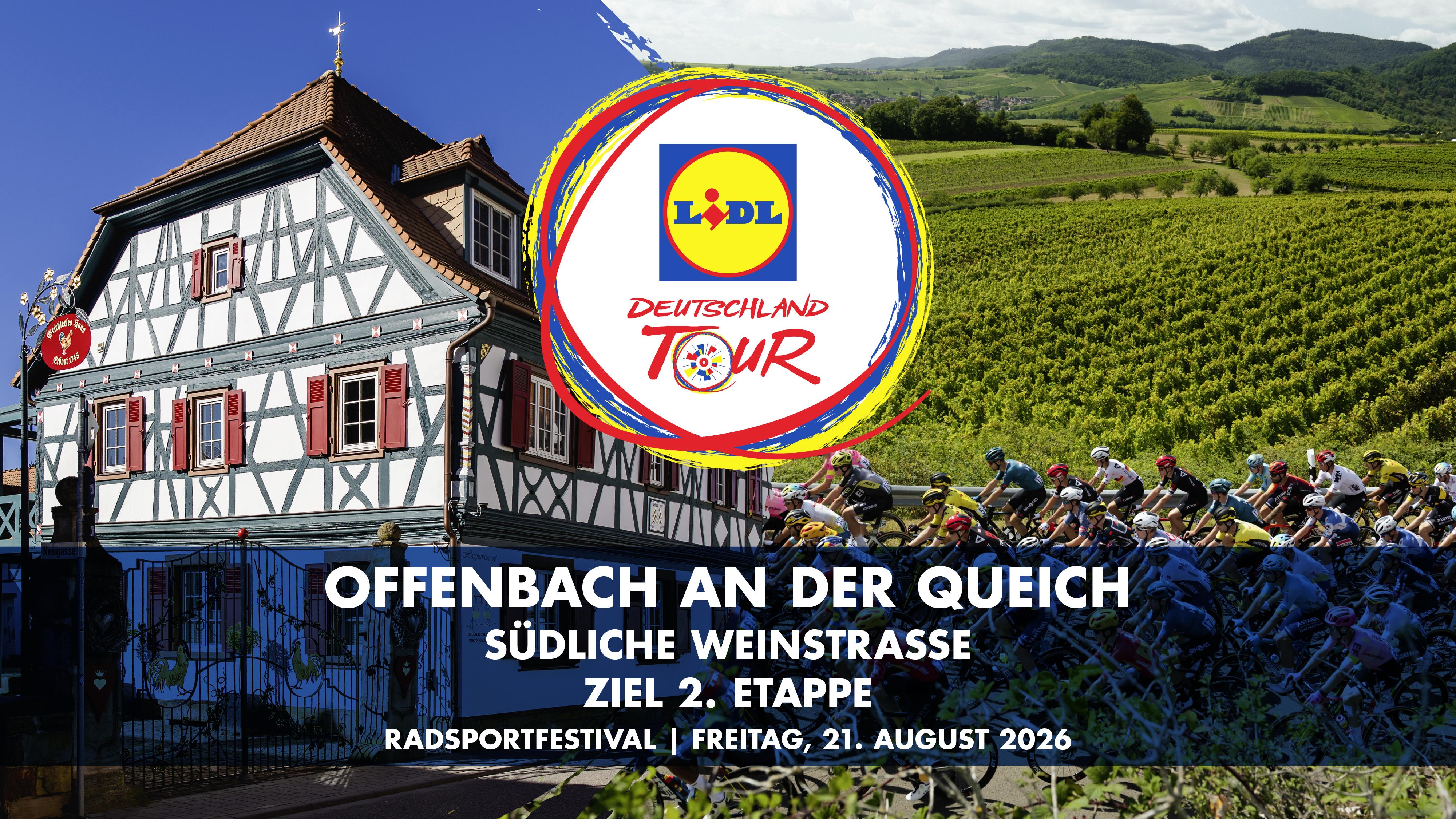 Am Freitag, 21. August 2026, wird Offenbach an der Queich zum Schauplatz eines großen Radsportmoments: Die 2. Etappe der Lidl Deutschland Tour, dem bedeutendsten Etappenrennen Deutschlands, endet an diesem Tag in der Ortsgemeinde.