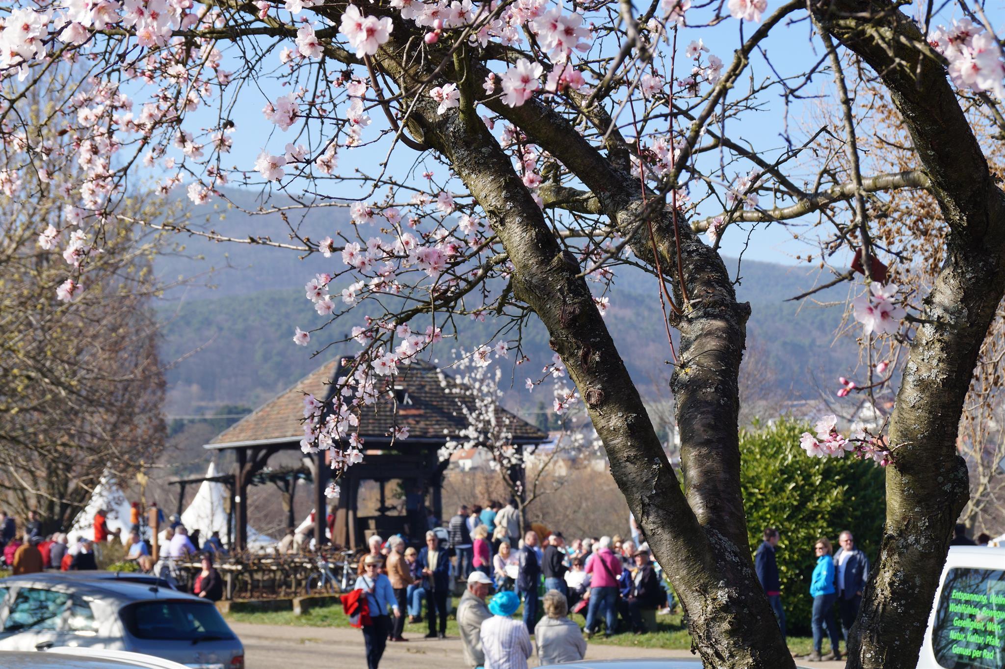Die von den Edenkobener Winzer organisierte Mandelmeile an der Villastraße gehört während der Mandelblütensaison seit Jahren zu den touristischen Highlights der Pfalz.