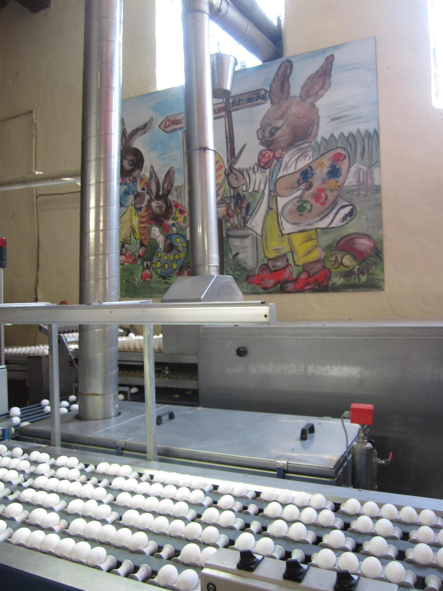 In der Ostereierfärberei findet ein Schaufärben statt. Bestaunen Sie das Osterei auf seinem Weg zum bunten Ei in der Verkaufsverpackung.