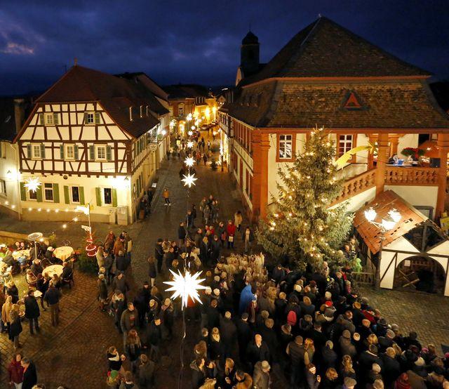 Unzählige Herrnhuter Sterne tauchen Freinsheim in ein ganz besonderes Licht.
