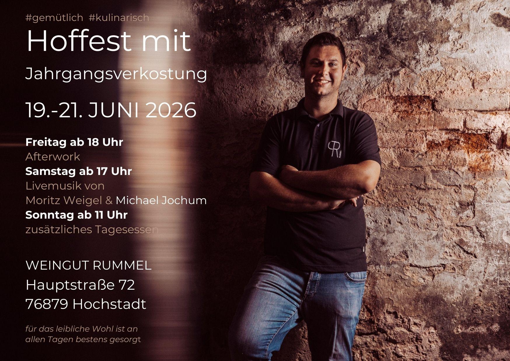 Zum fünften Mal verwandeln wir unser Weingut in eine stimmungsvolle Eventlocation und laden herzlich zu unserem Hoffest mit Jahrgangsverkostung ein. An allen Tagen können Sie unsere kompletten Weine aus dem Sortiment verkosten und den neuen Jahrgang entdecken.
